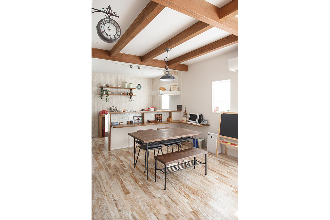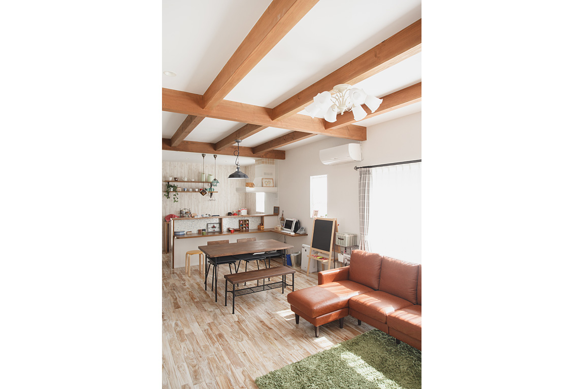 無垢の床や珪藻土・スペイン漆喰など自然素材をふんだんに使ったシンプルながらもかわいい家