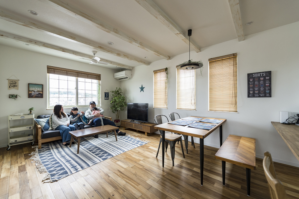 無垢の床や珪藻土・スペイン漆喰など自然素材をふんだんに使ったシンプルながらもかわいい家