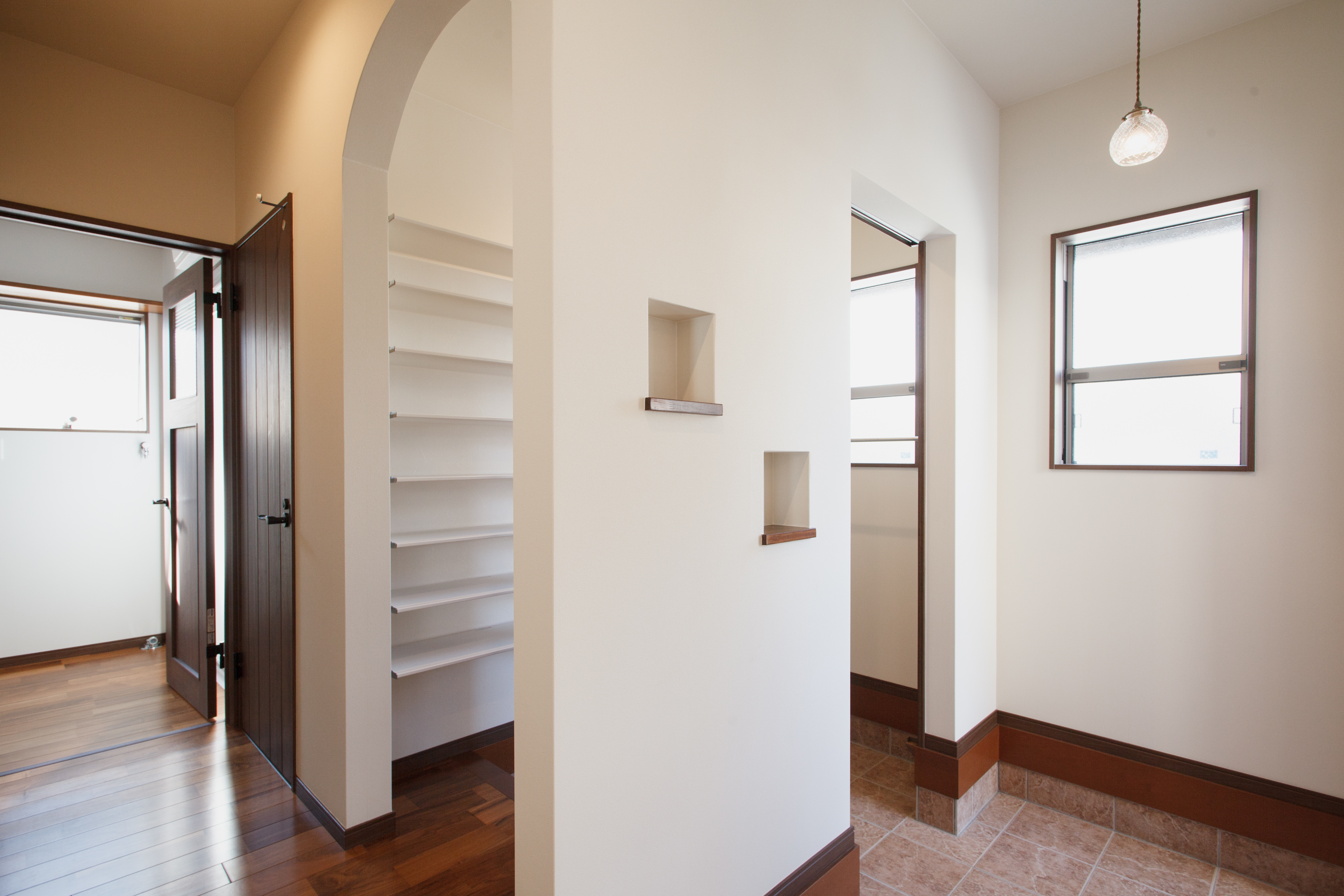 回遊できる間取りやたっぷり収納ながらもシャビーなスタイルを取り入れた家